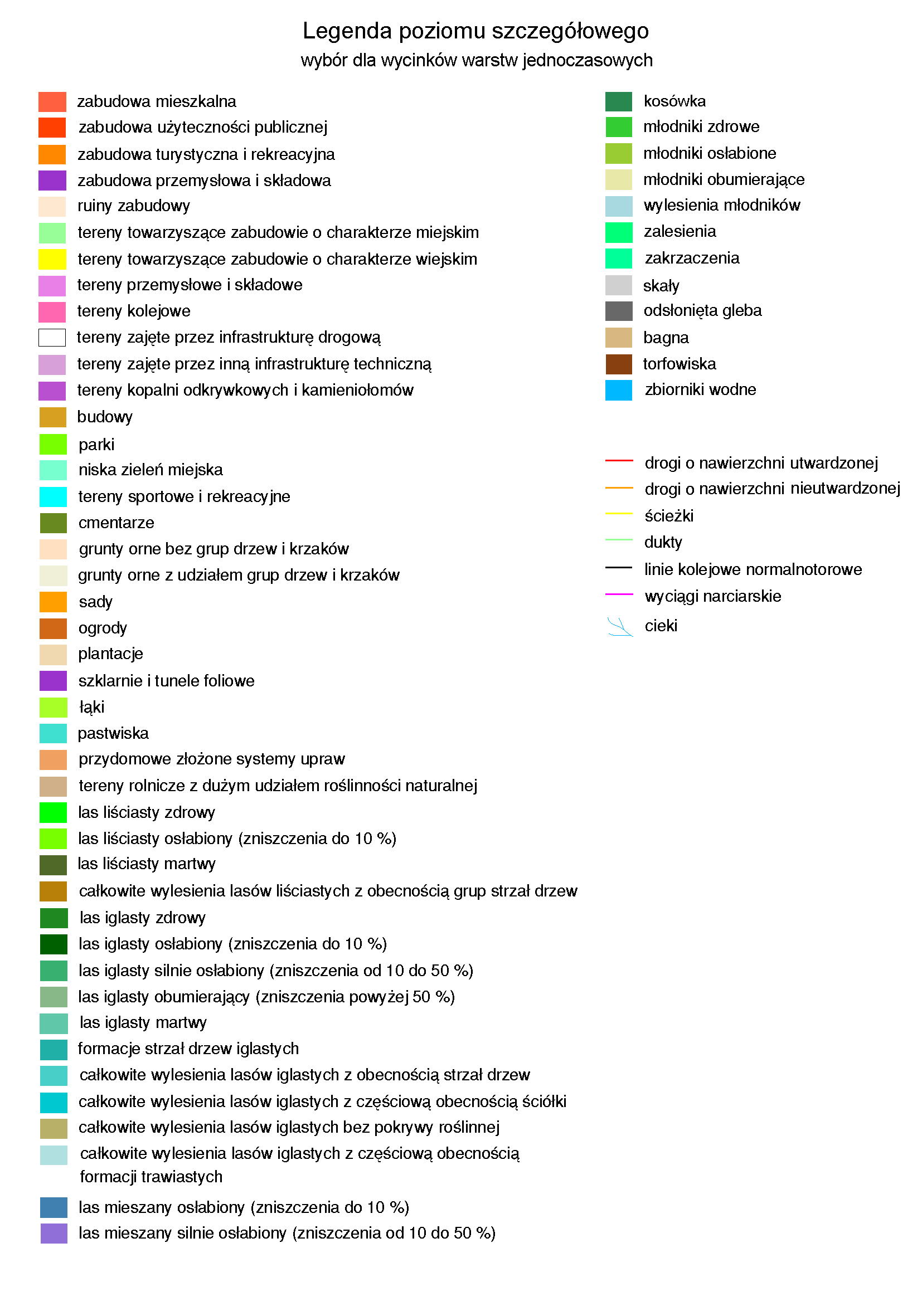 Przykłady warstw informacyjnych użytkowania ziemi poziomu szczegółowego: